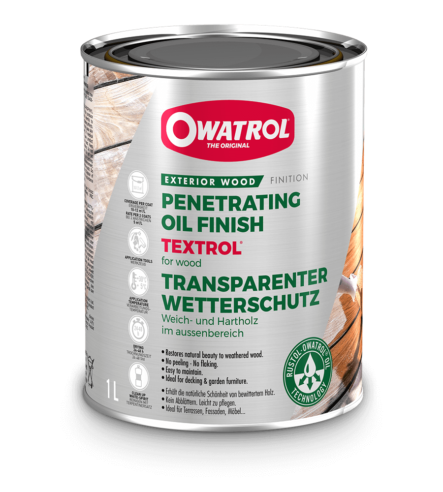 Textrol is available in 4 shades, including clear, and enhances the natural beauty of the wood whilst providing a mildew-resistant finish.