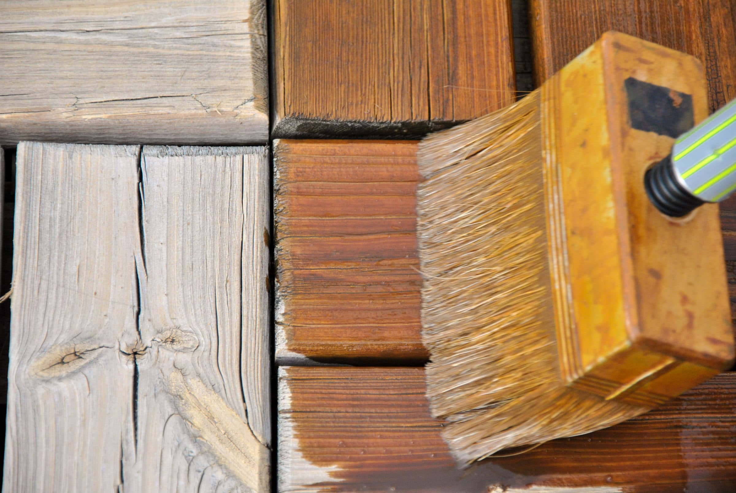 Maintenance is due when the treated wood takes on a weathered grey look or has severely faded.