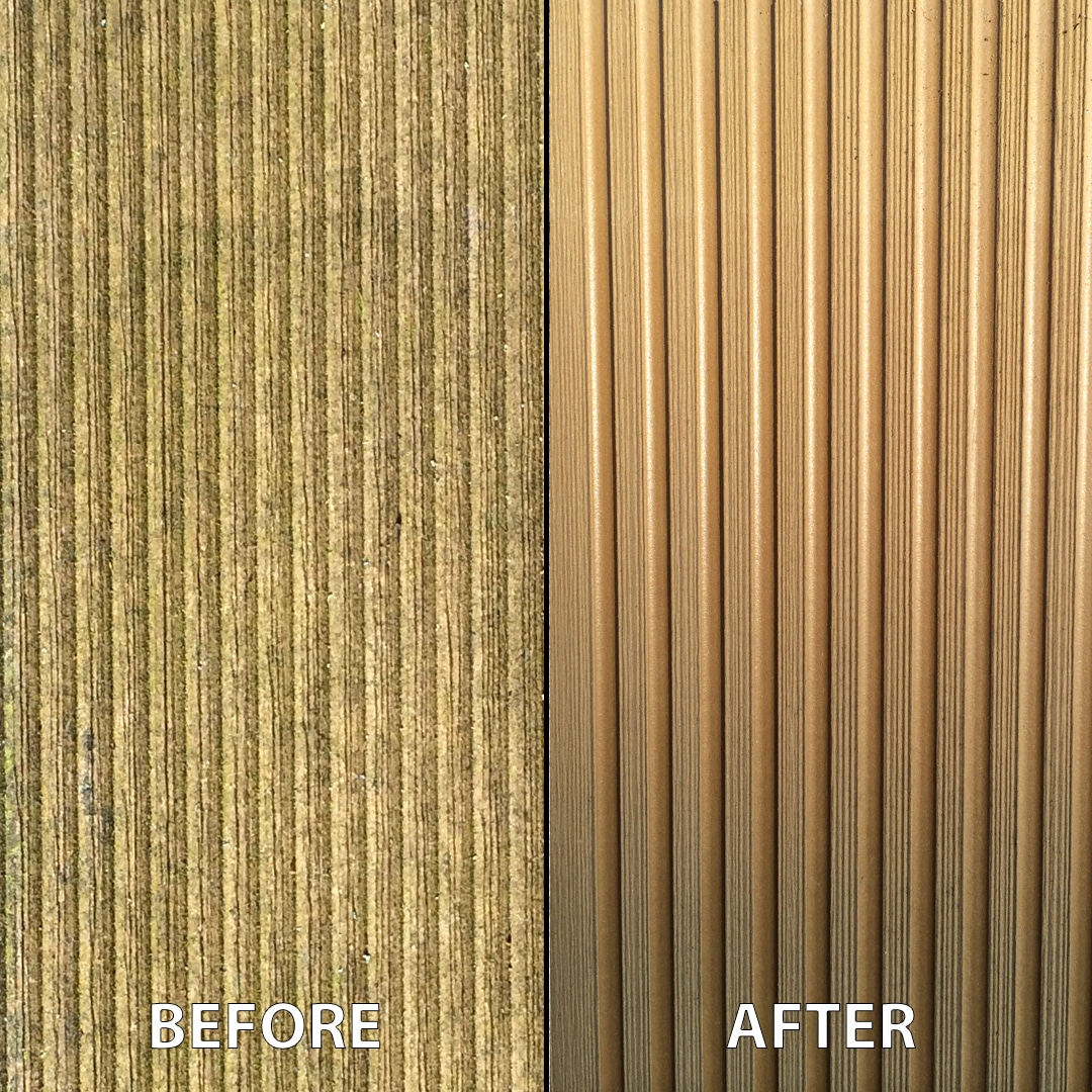 It’s environmentally friendly and won’t attack plastic pool liners, stone, cement or other materials which may be near to your composite wood. It is very easy to use as it works straight from the bottle, can be applied easily with a brush or roller and is fast acting (in as little as 5 minutes)! When you’re finished you simply rinse it with water and it’s done. It’s ideal for use on both horizontal and vertical surfaces as the gel consistency won’t drip or run.