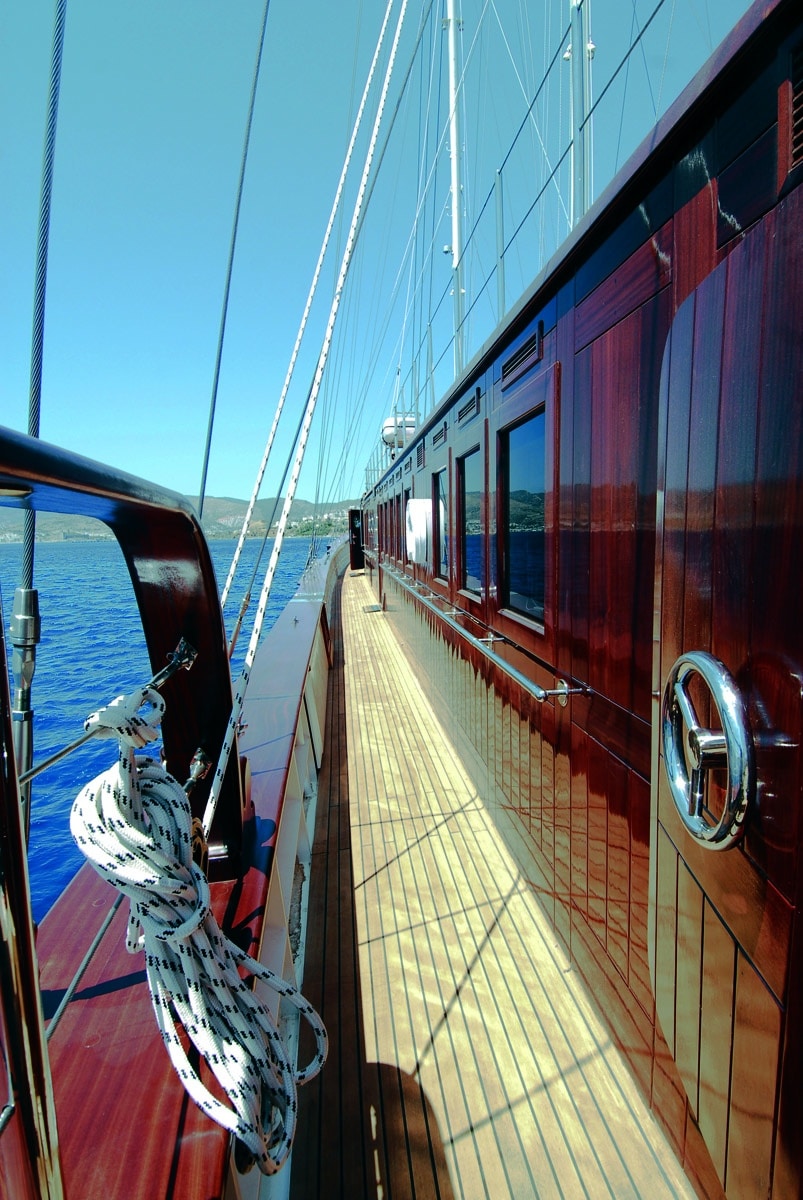 Before using Deks Olje D2, all wood surfaces should be treated and protected with Deks Olje D1 saturating wood oil. Unlike traditional varnishes, Deks Olje D2 will not craze or blister and because of Deks Olje D1’s penetrating qualities it will not peel or flake as water is unable to get in to the wood. On boats, D2 can be used for all applications above the waterline but please note that due to the high gloss finish it is not suitable for surfaces which will be walked on as it would be very slippery.