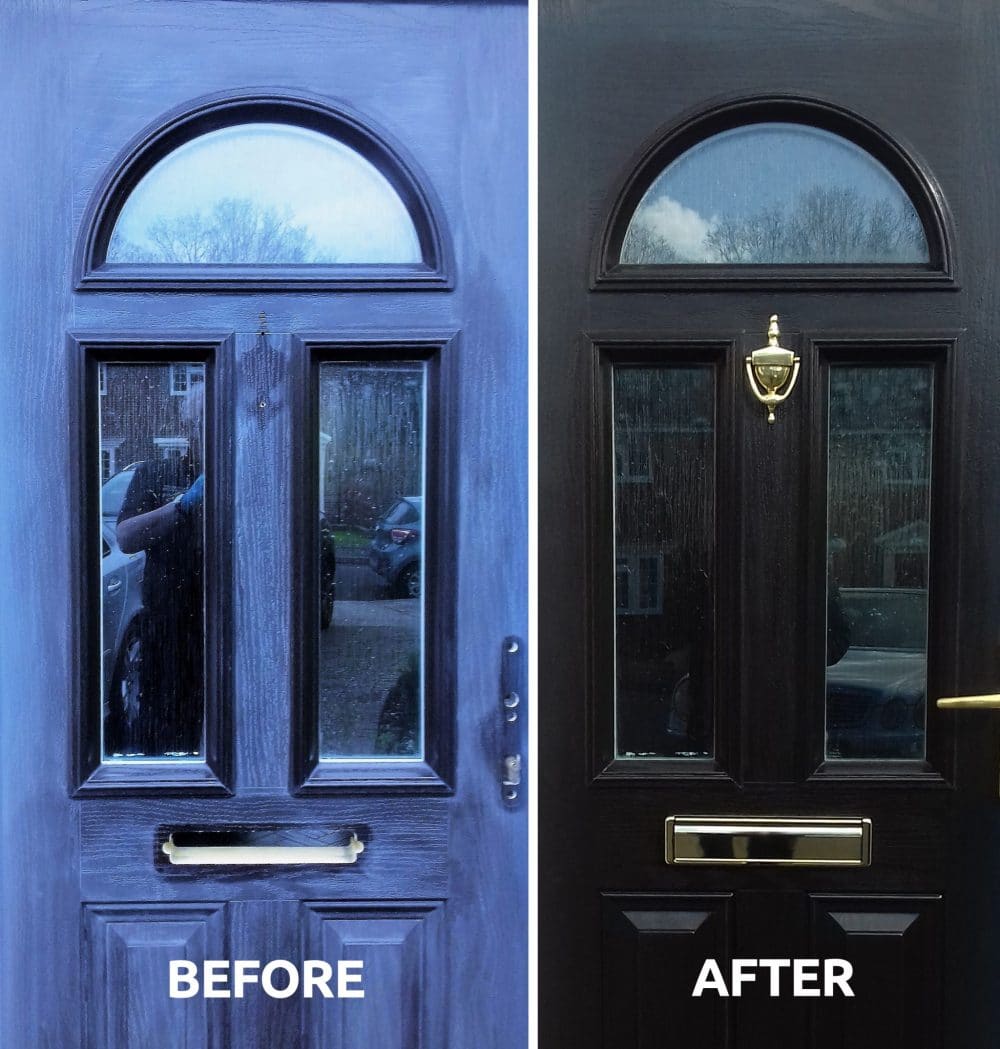 Our composite front door has a ‘wood’ finish. This had lost it’s colour and looked in