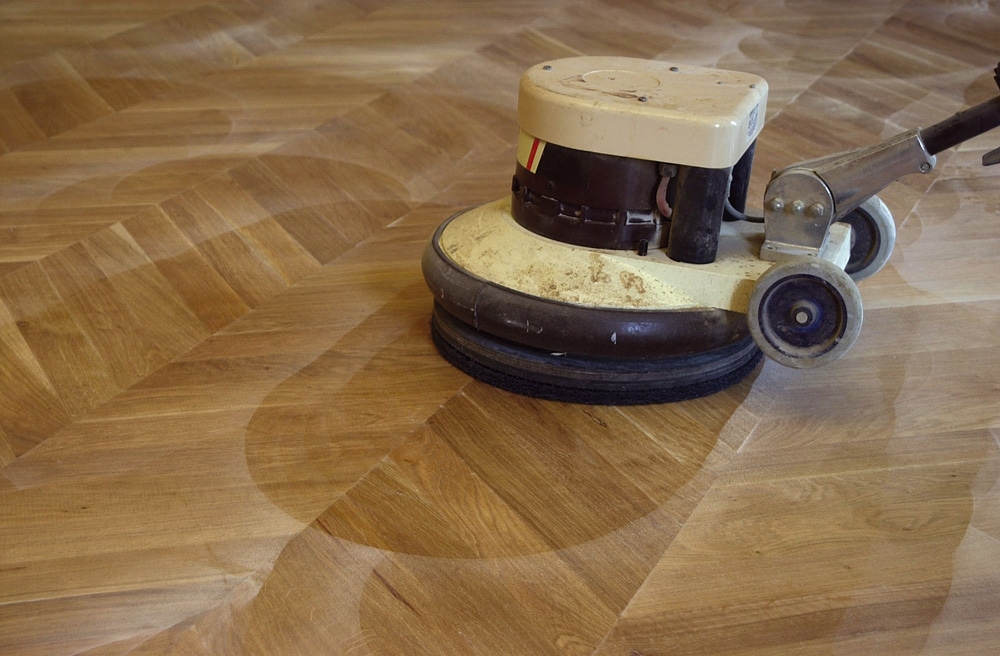 Sand wooden floor using appropriate system and abrasive grades, depending on condition of surface and wood species.